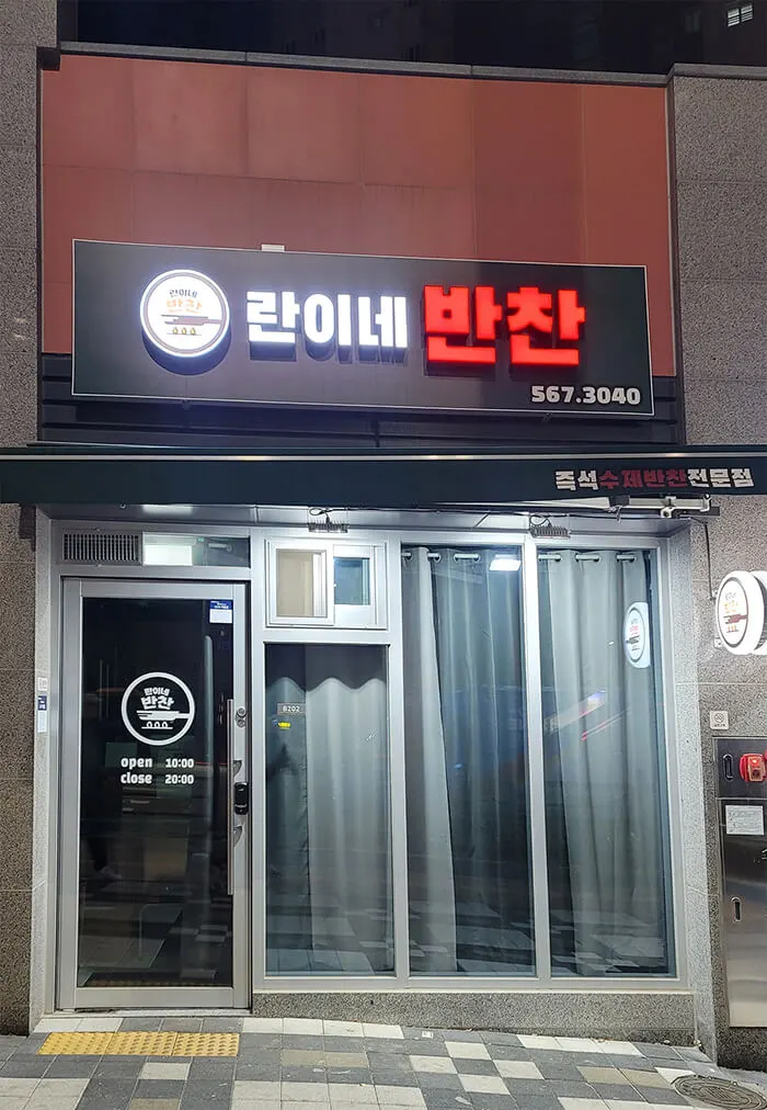 검단 란이네반찬은 인천 서구 서로3로 50 809동 근린생활시설 2동 B202호에 위치한다. 검단 아라동 모아미래도 아파트 상가에 있는 곳이다.
