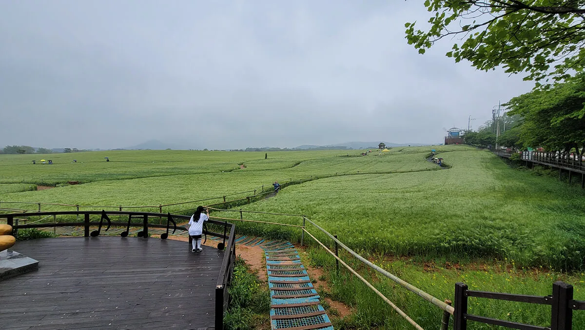 이날은 비가와서 아직 사람이 많지는 않았다. 비가와서 걸어다니는데 좀 번거롭기는 했지만 사람이 많지 않고 비를 맞은 청보리밭은 더 깨끗하고 싱싱해 보였다. 끝이 보이지 않을 정도로 드넓은 보리밭은 정말 한폭의 그림과도 같았다.