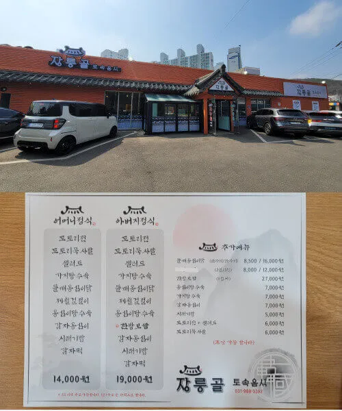 주차는 매장 앞에 넉넉하게 마련되어 있지만 가성비 맛집이라서 평일 점심시간도 손님으로 붐벼 주차공간이 부족할 때도 있는데 바로바로 주차공간이 생겨서 오래 기다리지는 않았다. 바로 옆에 솥밥으로 유명한 장릉엄마밥상도 있다. 관련 포스팅은 아래 링크로 이동바란다.