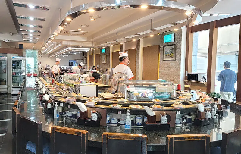 우리가족은 4인석에 앉았다. 너무 배가 고픈 상태로 방문해서 종류별로 마구 스시접시를 옮겨 놓고 함께 먹었다. 스시 가격은 최소 1,650원에서 13,000원까지 있다. 광어, 전어, 장어, 연어, 도미, 전복, 가리비치즈관자, 계란, 소고기, 유부, 연어뱃살 등등 그 외 알밥까지 먹었고 우리는 3인이 식사를 한 비용은 15만원이 조금 안되었던거 같다.