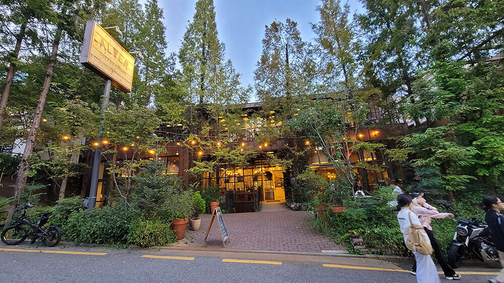알베르는 2호선 강남역 10번출구로 나가서 강남대로를 걷다가 골목위로 걸어가다 보면 보이는 도심 속의 숲속 공간 같은 대형 카페이다.