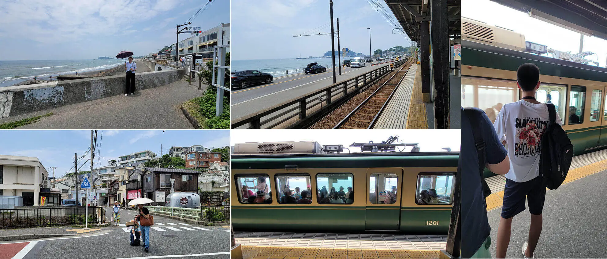 center>일본은 정말 6월달인데도 날씨가 너무 더웠다. 필자와 엄마는 날도 덥고 슬램덩크는 남편이 좋아하는데 우리 모녀는 별 관심이 없어서 시치리가하마역에 가서 커피를 한잔 마실까 하고 에노덴 기차를 탑승해 보았다. 길이가 짧은 에노덴 기차는 신기한 것이 노선이 한개이고 오고 가는 기차가 서로 맞딱드리면 기차 한대는 서서 기다려준다. 그럼 엇갈린 다른 철로로 비껴가는 시스템이었다.