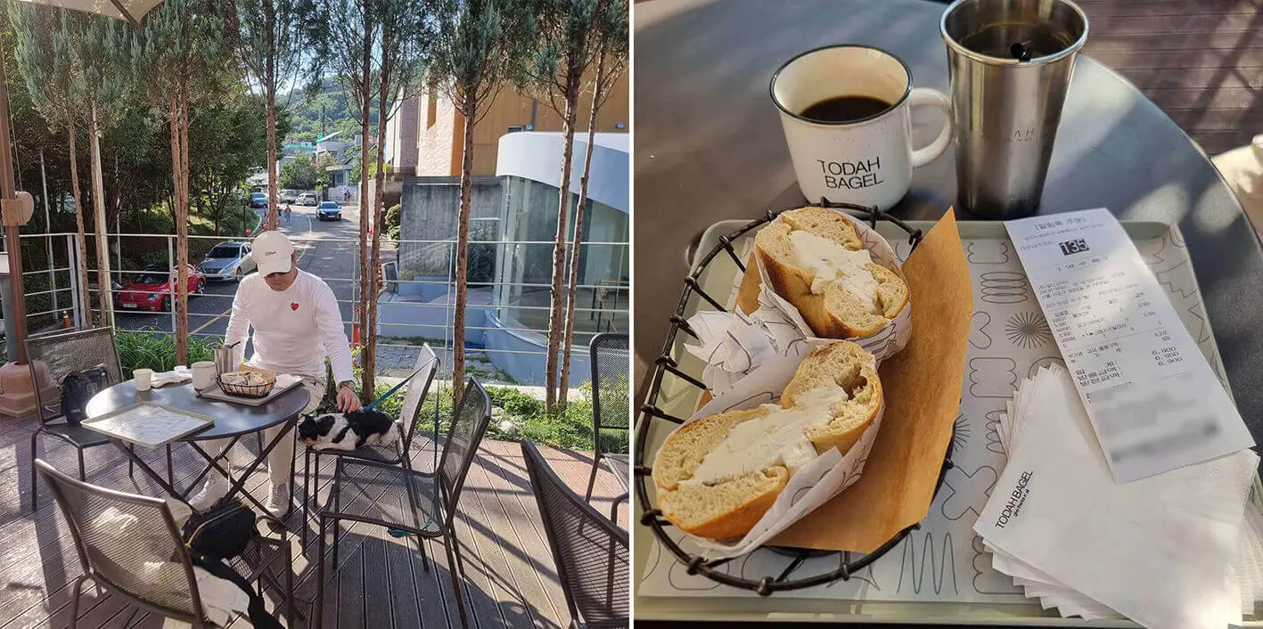 필자는 토다 베이글 본점을 주중과 주말 모두 방문해 보았는데 주중에는 바로앞에 삼성전자서울R&D캠퍼스가 있고 카페를 방문하는 사람들이 많아 손님이 좀 많은 편이었고, 주말에 방문했을 때는 상당히 한가한 분위기였다. 참고 바란다.