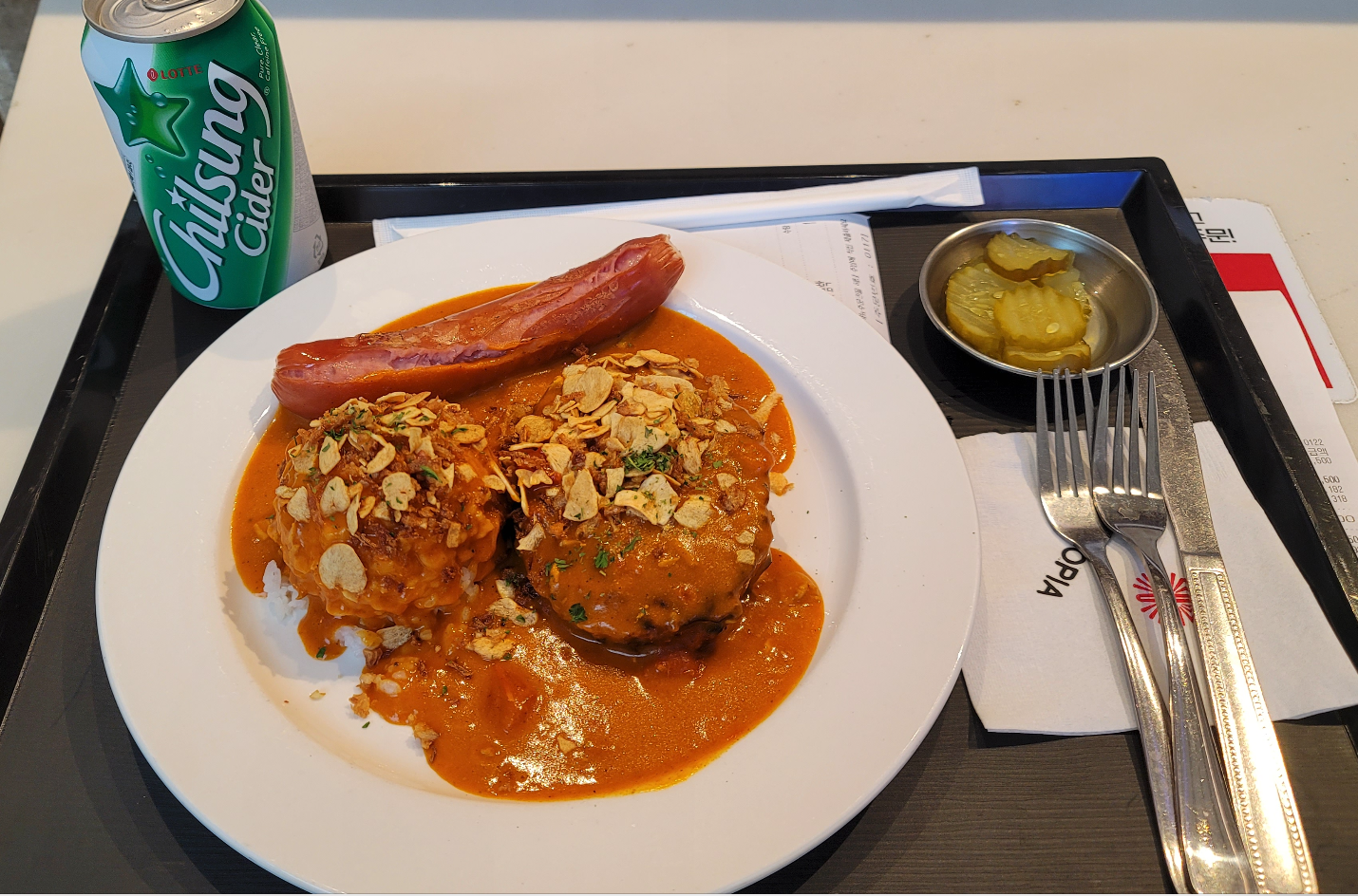 함박 한덩이, 흰밥 한덩이, 그리고 소세지 한개 이렇게 구성된 크림커리함박도 맛은 괜찮은 편이었다. 클래식함박과 크림커리함박 둘중에 어떤게 더 맛있냐고 물으면, 개인마다 맛에 대한 호불호가 다르겠지만 필자의 입맛에는 클래식이 더 맛있었다.